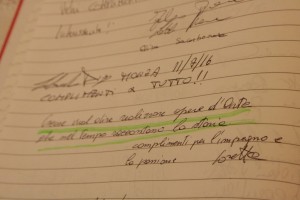 Senz’altro. Questo è un Museo. Uno l’altro giorno ha scritto una dedica che è bellissima (va a cercare la dedica nel Libro degli Ospiti)…non l’ho sottolineata, ma è bellissima…adesso non la trovo, sempre così….ecco qua: “Creare vuol dire realizzare opere d’arte che nel tempo raccontano la storia. Complimenti per l’impegno e la passione”.