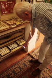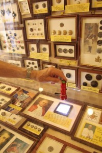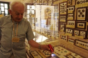 …c’è il ventaglio, con il bottone, c’è un bottone con il ventaglio. E abbiamo fatto bingo, perché in 8 anni abbiamo superato i 350.000 visitatori. Abbiamo 50 bottoni di nazioni straniere, arrivati da tutto il mondo, quando avevamo aperto ne avevamo ottomila e cinque, adesso andiamo ai 13000, (due sono arrivati anche dallo spazio), ma abbiamo anche su 196 nazioni che ci sono nel mondo, noi abbiamo … di 143 nazioni e gli Stati Uniti sono stati contati per una nazione. Abbiamo articoli sui giornali di undici lingue straniere, quindi quando viene un cinese, un russo, un turco, un….ehhhh….aspetta (un giapponese?) no, un bulgaro anche….no un giapponese non ce l’ho, ce l’ho in cinese…oppure i portoghesi, i brasiliani, leggono gli articoli sui loro giornali. Oltre alle lingue classiche: francese, inglese, spagnolo, e via dicendo.