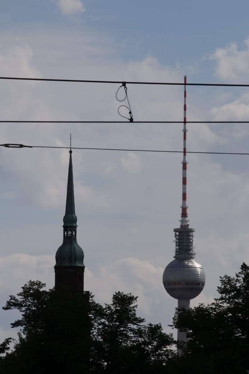 Durante i miei lunghi soggiorni a Berlino non sono mai salita sulla Torre della Televisione, ma l’ho fotografata a più riprese, con cornici, sfondi e compagni ogni volta diversi, durante le mie incursioni esplorative attraverso la città.