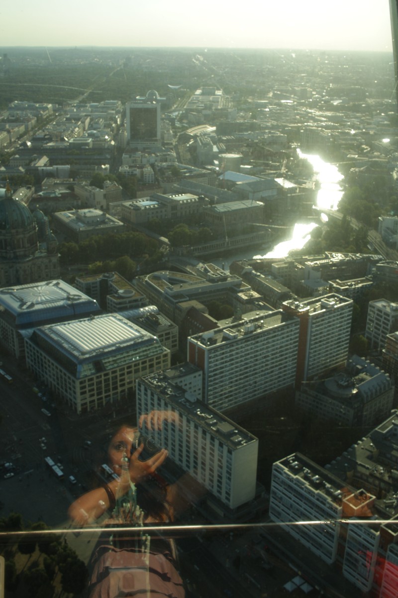 La visione dall’alto è stata di grande impatto, e molto emozionante. Ho avuto anche la possibilità di visitare il piano riservato all’elegante Sphere Restaurant che si trova al piano superiore rispetto al “belvedere” della torre, e che nasconde una particolarità: il pavimento ruota lentamente su se stesso, compiendo un giro di 180 gradi in circa due ora; così chi è seduto ad uno dei tavoli può ammirare la visione di Berlino dall’alto mentre consuma un’ottima cena, in alcuni orari con l’ulteriore “chicca” dell’accompagnamento musicale al pianoforte.