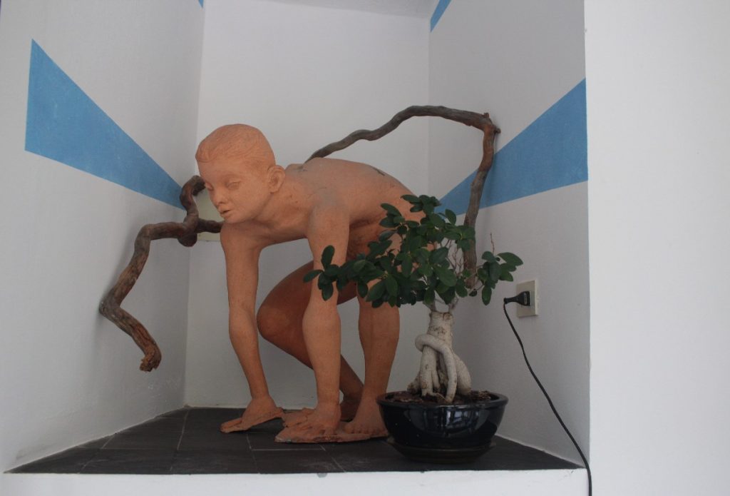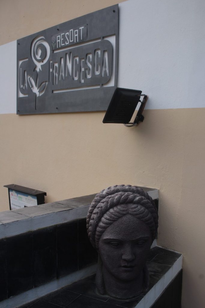 Nel corso dei brevi ma intensi giorni trascorsi alla Francesca in compagnia di Marco e Giovanna, abbiamo avuto occasione, grazie alla loro guida e ai loro racconti, di ascoltare, contemplare, assaporare, il connubio fra arte e natura che qui è profondamente armonico; inerpicandosi lungo i sentieri del resort, dove sono disseminate le belle villette affacciate sul mare o sul giardino, si incontrano opere d’arte realizzate da artisti contemporanei: fra queste ci sono anche le opere di Timo Bortolotti e Dodi Bortolotti Rezzoli (il padre e la sorella di Gloria, entrambi scultori di grande calibro), immerse in un profumato abbraccio vegetale.