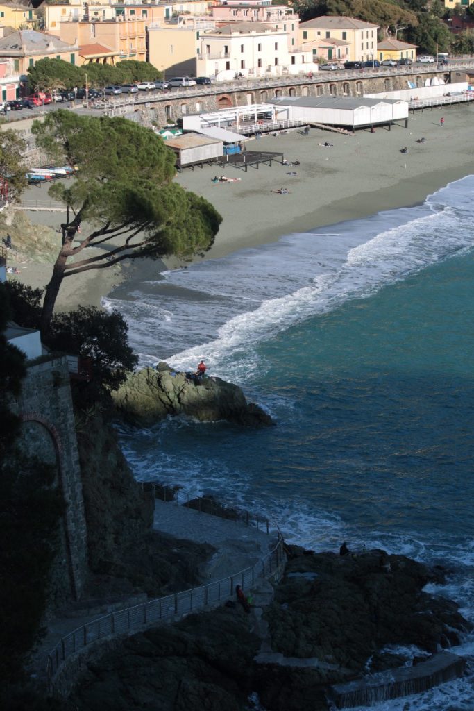 Marco e Giovanna ci hanno accompagnati anche a scoprire il borgo marinaro di Bonassola, al quale si arriva con una piacevole passeggiata che attraversa il tunnel dell’ex ferrovia che fino al 1970 collegava Levanto a Bonassola (riconvertito in strada ciclopedonale che unisce Levanto, Bonassola e Framura), offrendo un percorso ameno lungo il litorale, dalle coste frastagliate dove soffermarsi, ad occhi chiusi, lasciando entrare nel silenzio il fragore delle onde che abbracciano gli scogli.