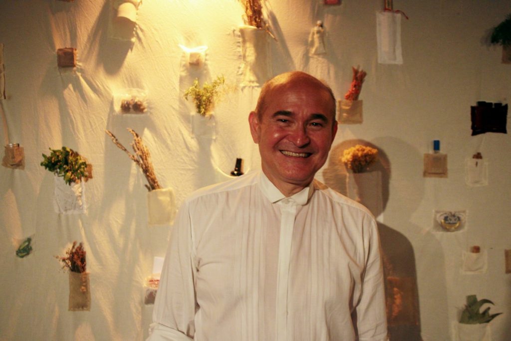 Siamo invitati ad alzarci dai nostri posti, uscire dalla zona del nostro comfort e metterci in gioco, giocando, come è da tradizione, ancora una volta, del Teatro de los Sentidos: ci avviciniamo a quei piccoli altarini cuciti uno per uno sul grande telo bianco sul quale sono disseminate essenze, lettere profumate, fotografie d’epoca di volti cari a qualcuno, oggetti d’uso quotidiano di un tempo che fu e che c’è ancora, frammenti di erbe e fiori che sprigionano, insieme al loro aroma, memorie vive o sopite.