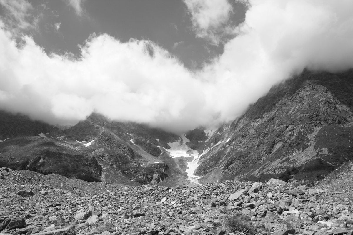 Qui, alta e piccola allo stesso tempo, resto in ascolto. La Montagna parla, ha una voce. Quella delle pietre che si sgretolano e rotolano lungo il suo corpo, quello del silenzio carico che viaggia attraverso l’elemento Aria, prendendo dimora nel suo corpo sottile e rarefatto, creando echi lunghi come nuvole sfilacciate.