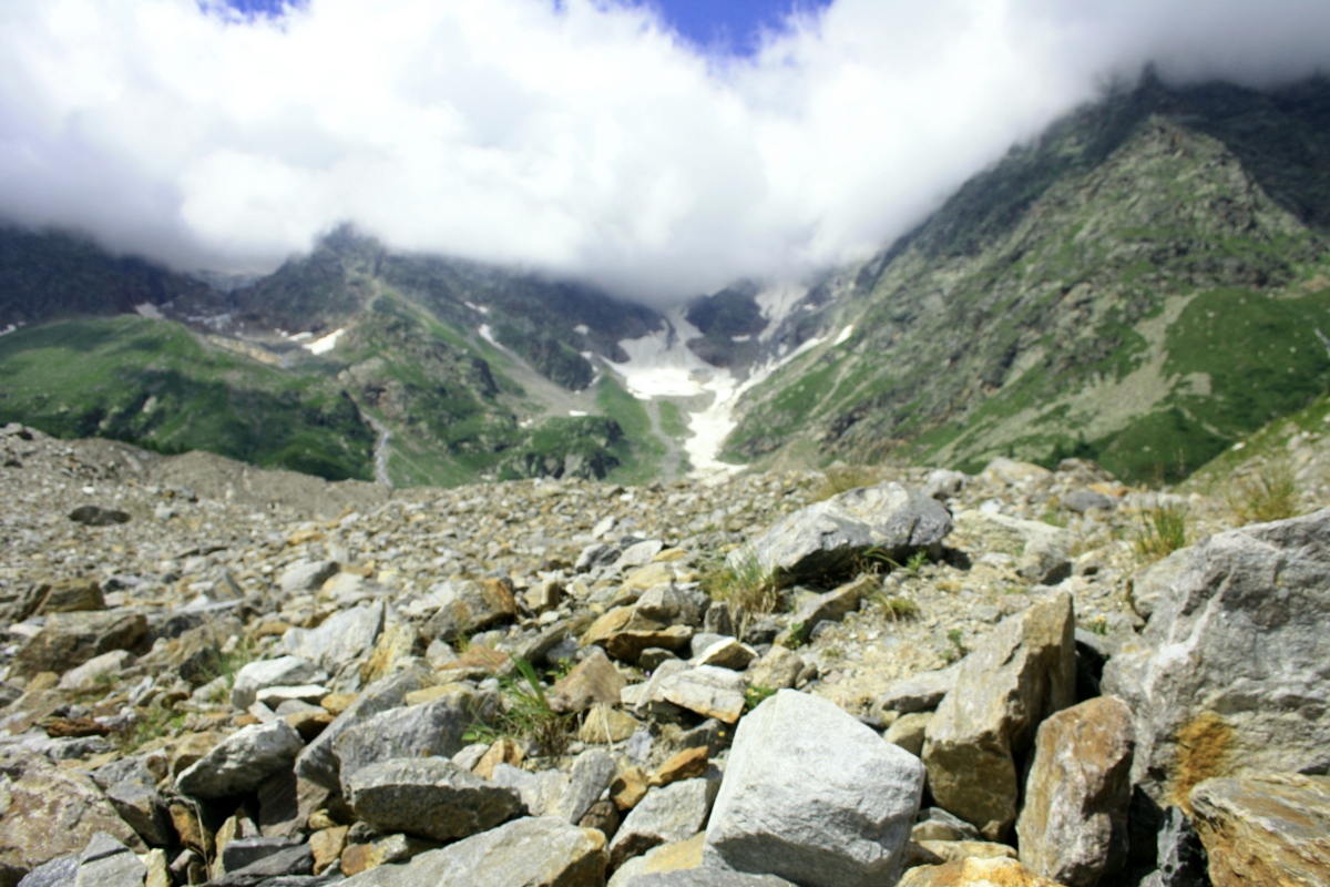 Arrivata ai piedi della morena glaciale, nascono i primi dubbi. Era da tanto che non percorrevo questa strada, e non riesco a capire quale sia il sentiero giusto. Poi qualcuno arriva in aiuto, e me lo indica.