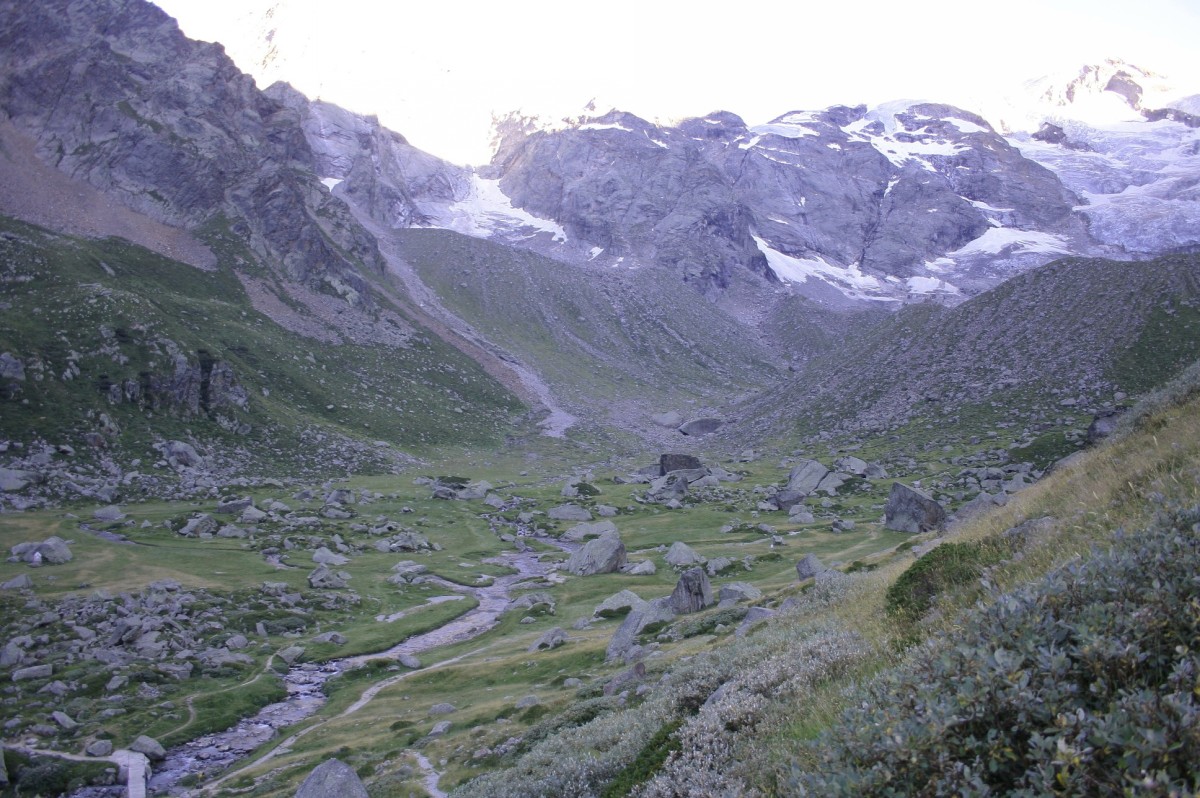 La morena è l’accumulo dei detriti rocciosi trasportati da un ghiacciaio (in questo caso quello del Belvedere). Risultato visivo è un piccolo solco lunare, che al passaggio dei camminatori emette suoni spigolosi.