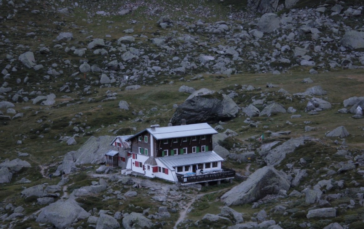 Scatto foto delle tappe di avvicinamento, faccio qualche breve pausa di riposo. Inizia a profilarsi la sagoma del rifugio, che mi sogguarda sorniona dall’alto. Ci sono, quasi. Appoggio lo zaino e il sacco a pelo, per l’ultimo scatto. Un ritratto alla casupola che accoglierà la mia notte in alta montagna.