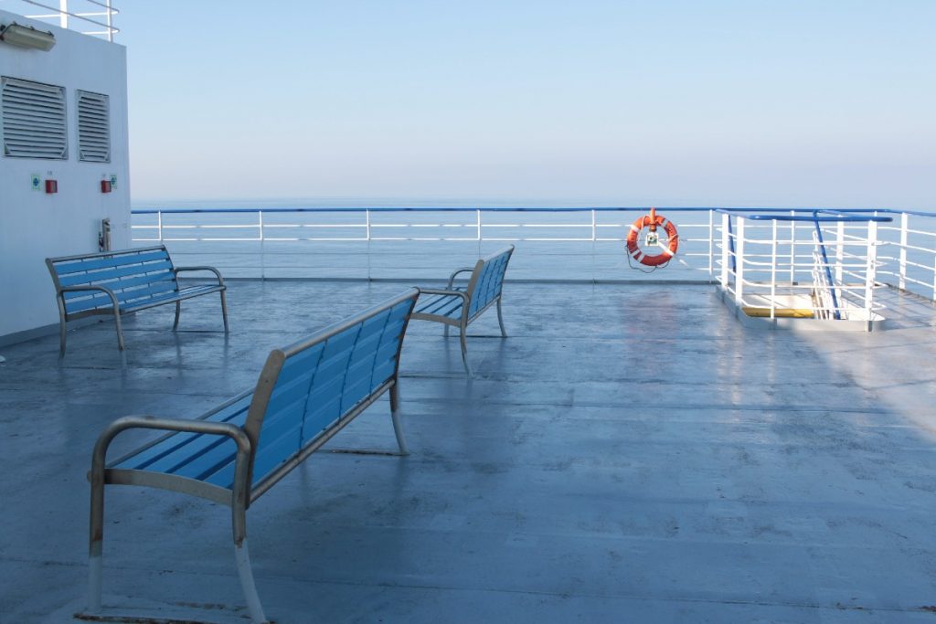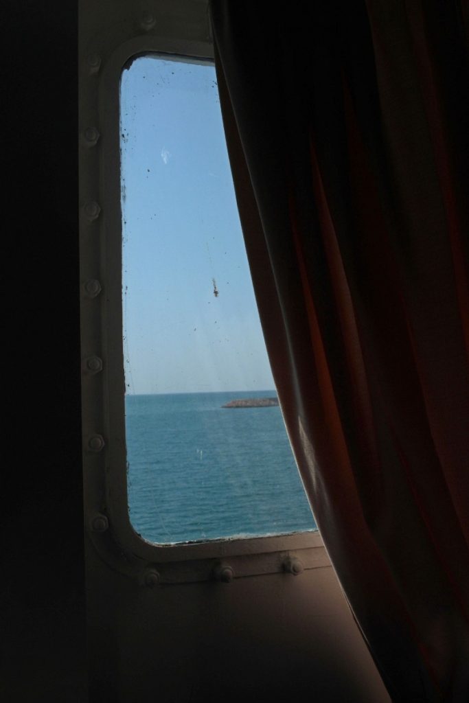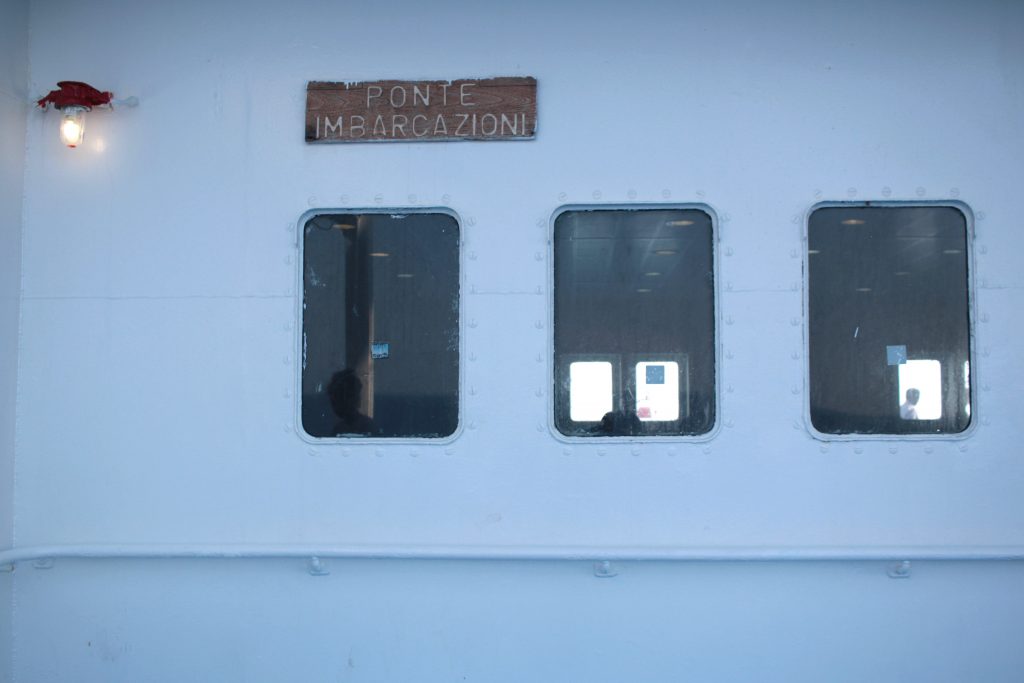Nel ventre di una nave la vita scorre lenta, fa assaggiare la sensazione dell’infinito e dell’immortalità che ne consegue. Ci si muove in stato di contemplazione, ammirando in silenzio, ad ogni passo e ad ogni sguardo, il corpo blu e sinuoso del mare, come fosse il dipinto dell’essere più amato.