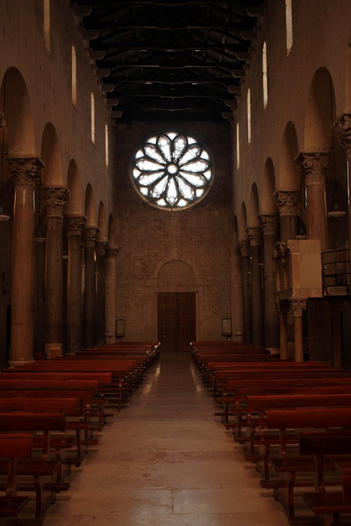 Le stradine color bianco e sabbia di Troia conducono verso luoghi di delizia per gli occhi e il palato: la Cattedrale di Santa Maria Assunta, splendido esempio di architettura romanica, è un gioiello merlettato che pare uscito da un libro di incanti per bambini, che conserva il prezioso affresco della Dormitio Virginis ispirato a quanto pare dai Vangeli apocrifi.