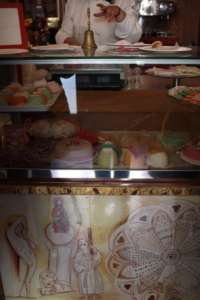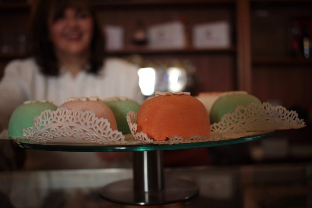 Proprio a fianco della Cattedrale si trova la più celebre pasticceria di Troia, la Casoli, che offre in esclusiva la specialità della  Passionata,  golosi e multicolori dolcetti di pasta di mandorla e ricotta, creazione della signora Lucia Casoli, che gestisce la pasticceria insieme al marito Nicola. Il nome del dolce, la cui forma evoca il rosone dell’adiacente cattedrale, vuole essere un’esortazione a vivere la vita con passione. Che modo originale e creativo per veicolare un messaggio tanto importante!