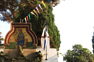 Qui si trova una piccola e suggestiva cappella. Ho sempre amato le chiese ortodosse, per l’essenzialità dei loro spazi, e il profumo che sprigionano. Questa è piccola piccola, dal colore dorato che barbaglia in penombra, insieme alle candele alte e sottili.