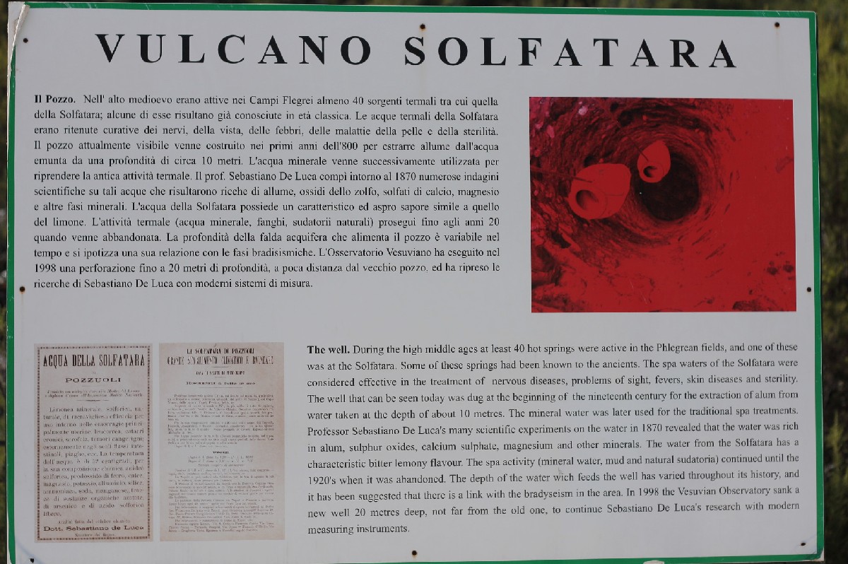 Il vulcano della Solfatara di Pozzuoli è ritenuto uno dei più interessanti dei Campi Flegrei; la sua visita era inclusa fra le tappe del Grand Tour in Italia già dal XVIII secolo.