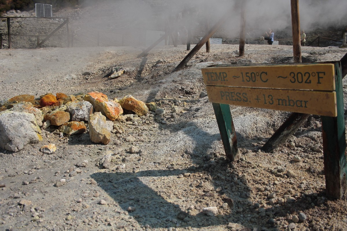 Attori protagonisti della visita all’antico cratere vulcanico sono le fumarole (piccole fessure nel suolo vulcanico, che emanano gas vulcanici e vapori), la fangaia (una miscela di materiale argilloso, acqua piovana e vapore acqueo condensato, che, grazie alle temperature elevate, viene portata ad ebollizione), la Bocca grande (la fumarola principale), il Pozzo (dal quale si estraeva una sostanza curativa dal nome di allume, dall’acqua che veniva attinta dalla falda sotterranea), le Stufe (due grotte scavate sul fianco della montagna, che fungevano da “camera sudatoria”, per curare le malattie reumatiche, della pelle, e delle vie respiratorie).