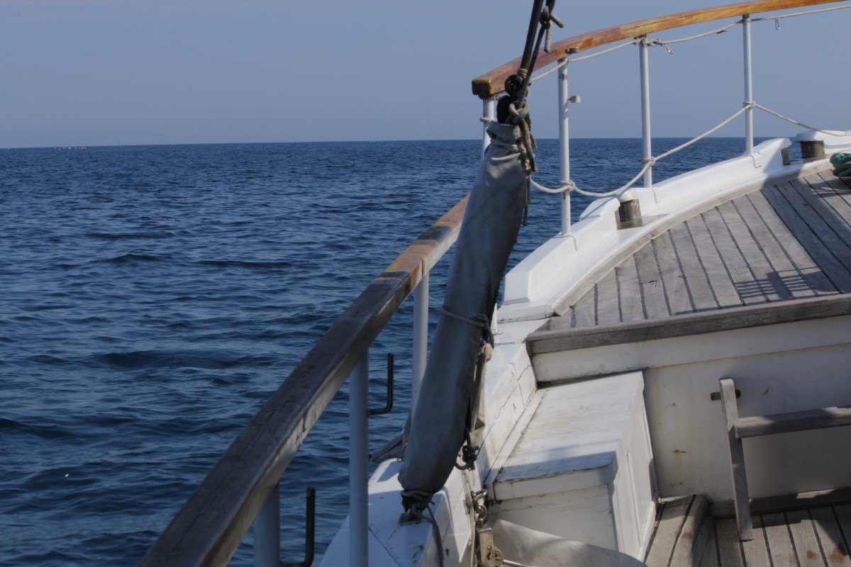 L’esperienza della navigazione a vela è completamente diversa da quella della navigazione a motore: da Vieste in poi, abbiamo issato le vele, affidandoci alla volontà del Vento, che avrebbe deciso i tempi del nostro viaggiare. Quando si naviga a vela in mare aperto, la sensazione può essere quella di essere immoti nelle braccia del mare: pare che nulla si muova, e che si sia immersi in un eterno, lieve, dolce cullare.