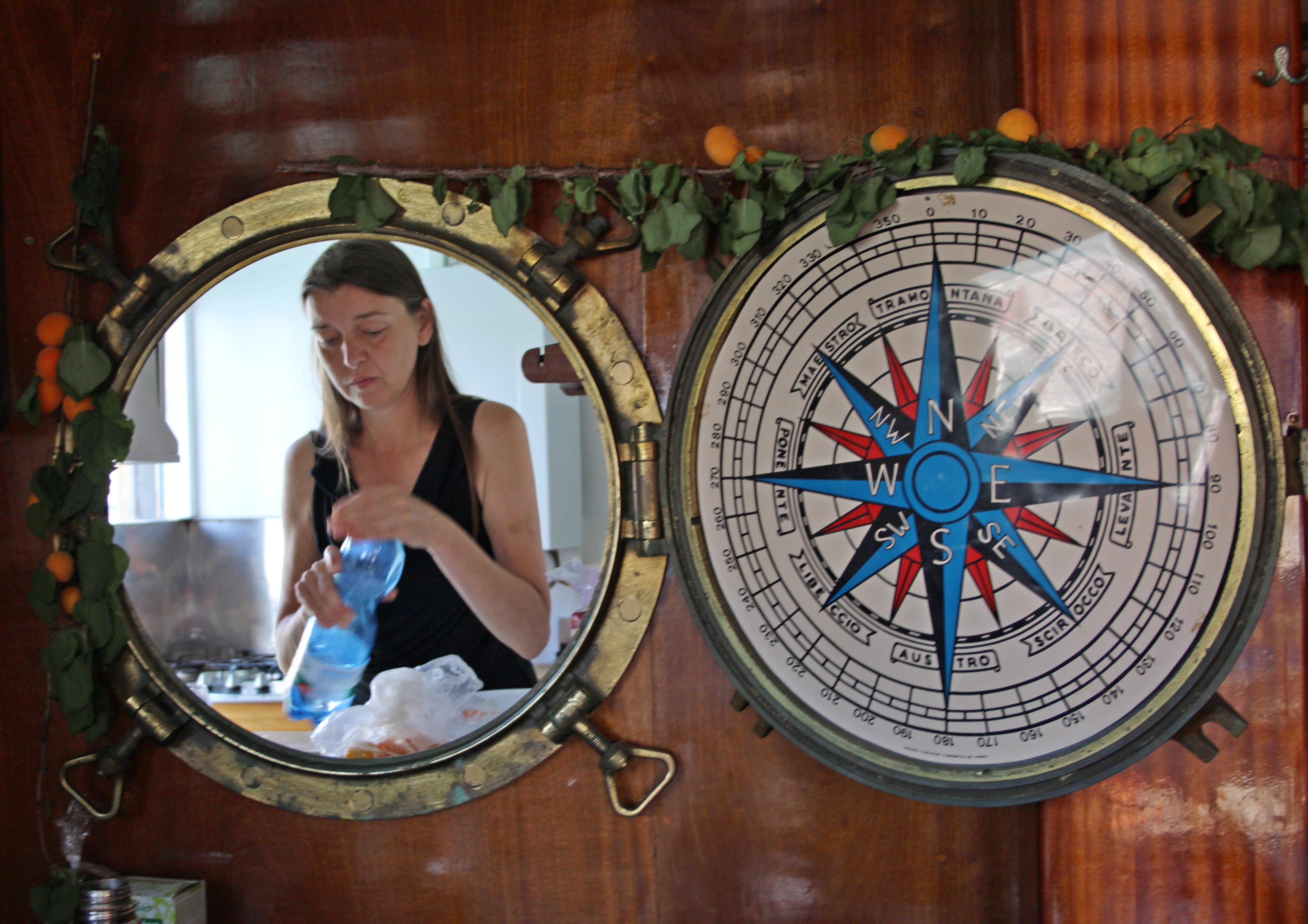 Fin da piccola mi sono sempre sentita a mio agio, durante i percorsi in traghetto per raggiungere una località di mare dalla terraferma: mentre attorno a me in molti manifestavano i segni di un forte disagio fisico, io risplendevo di salute. Anche quando il mare si fa grosso, e ha voglia di giocare, lo assecondo rispondendo al suo movimento, il che è l’unica cosa che è possibile fare, quando si viaggia in nave, o a maggior ragione, su una barca.
